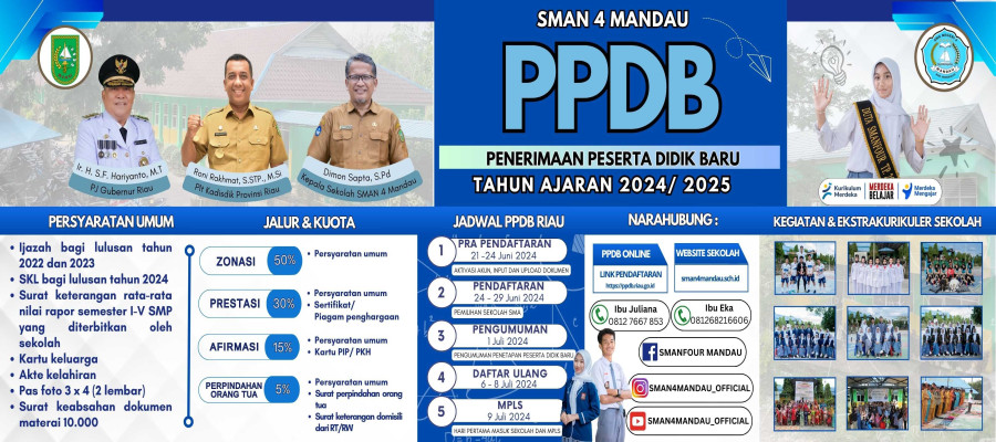 Segenap civitas akademik SMAN 4 Mandau mengucapkan selamat dan sukses atas diterimanya ananda ke perguruan tinggi negeri jalur SNBP tahun 2025. Semoga kedepannya bisa menjadi mahasiswa yang sukses, berpestasi, dan juga semoga kedepannya SMAN 4 Mandau bis